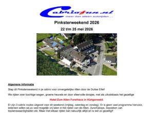 Er zijn 3 cabrio routes uitgezet voor dit weekend (vrijdag, zaterdag en zondag).